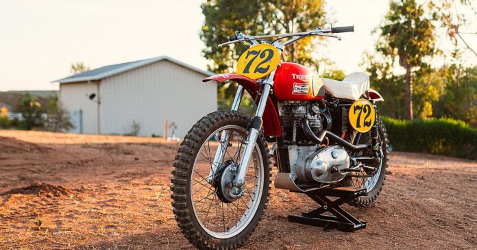 The term ‘desert sled’ is one of the most evocative in motorcycling, and for many, the Triumph TR6 is the quintessential example. Art director and builder Paul Hartman is a self-professed Triumph desert sled guy, but he’s always loved the look of the Husqvarna Cross. So, he decided to build his own version of that iconic Husky, but on a 1959 Triumph TR6 platform.