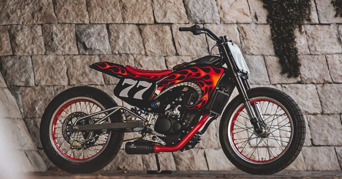 Flat track mad scientist Toshiyuki ‘Cheetah’ Osawa delivers a spicy Royal Enfield Guerrilla 450 flat tracker as hot as the chili pepper it’s named after.