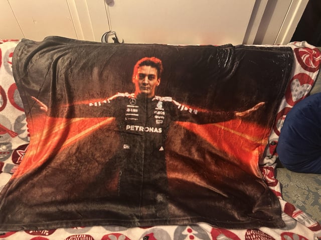 I’ve been wanting some new F1 merch but none of the official items really spoke to me. So I decided to ask a friend with a small personal printing business to help me out. After looking through some photos, I decided I needed a blanket with George doing his classic T-pose. Given the current weather predictions I thought it would be nice to have something to help keep me warm. I’m curious to see how the weather is going to affect the GP 👀 submitted by /u/bulletproofdenimjckt |